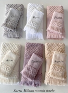 30×50 Sarra Tek Milano Etamin Havlu, ince detaylı etamin dokusu ve yumuşak tutuşuyla günlük kullanımda hem şık hem de konforlu bir seçenek sunar. Sarra’nın pamuklu dokuma kalitesi sayesinde su emiciliği yüksektir, çabuk kurur ve cildi tahriş etmez. Şık görünümü sayesinde hem misafir havlusu hem de günlük kullanım için idealdir.